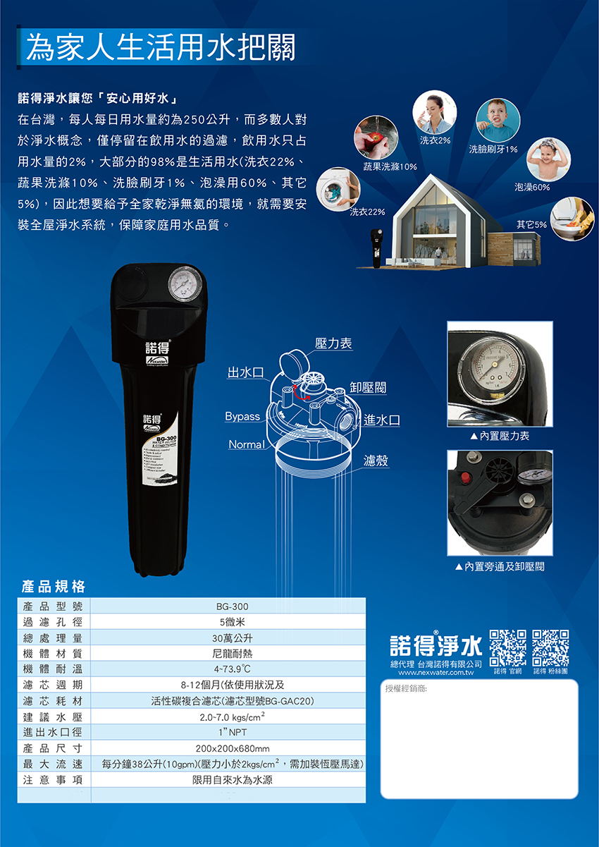 諾得淨水 BG-300 全屋除氯型淨水系統
